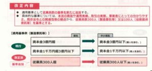(2)これまで下請法の対象となる発注企業と受注企業の関係、資本金の幅に若干の変更有り。またこれまで資本金だけだった対象判断に従業員数も含まれることとなった。