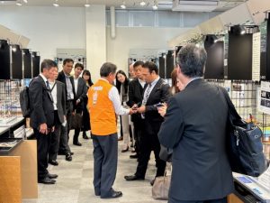 大阪のものづくりの歴史から始まり、大阪の中小企業の現状、支援体制に続き、この後見学する常設展示場の説明、ビジネスマッチング支援のお話を伺いました。なかでも「大阪製ブランド」認定制度というものがあり(ただし、認定対象の製品は、一般消費者を対象として販売する製品であり、応募企業が設計・製造した製品)、メリットとしてブランド認定されるとロゴマークの使用が可能でプロモーションの支援を受けることができ、大阪府等の情報発信や大阪府関係施策などへの推薦(広報誌での紹介、イベント・催事での製品紹介等)を受けられるそうです。